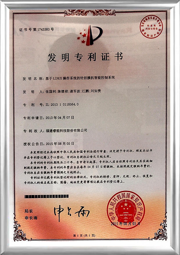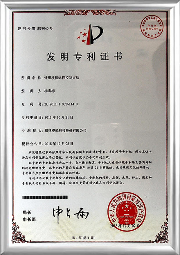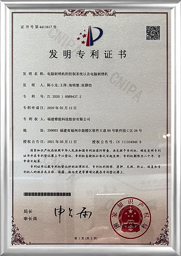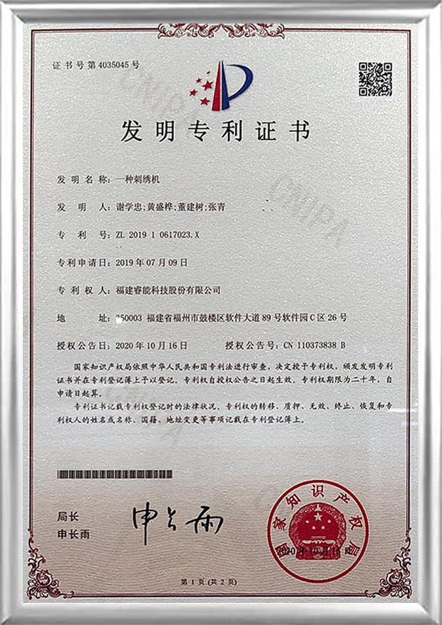 ● Centrum technologiczne firmy zostało uznane za „Centrum badawcze technologii inteligentnego sterowania sprzętem tekstylnym Fujian”.