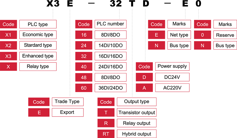 | X | 256 punktów | Element bitowy | X0~X377 |