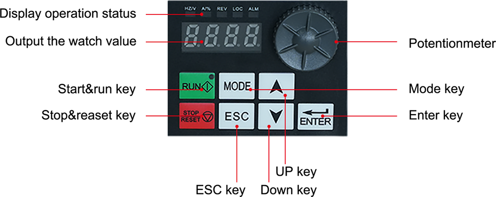| Sygnał ustawienia częstotliwości | Zintegrowany panel operacyjny | Przełącznik membranowy (przycisk), pokrętło prędkości (potencjometr) |