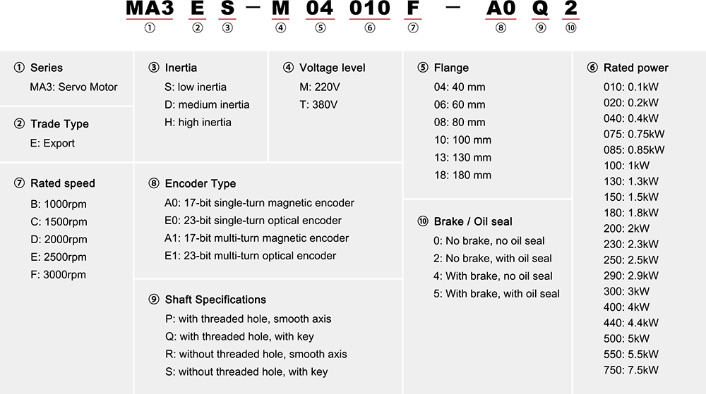 | Model silnika | MA3ED-M06040F- □□□□ |
